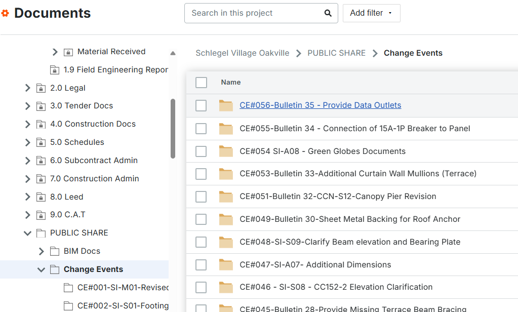 Once a folder is created for a change and uploaded, go to the Drawings tool. Select Drawings under Project Management.