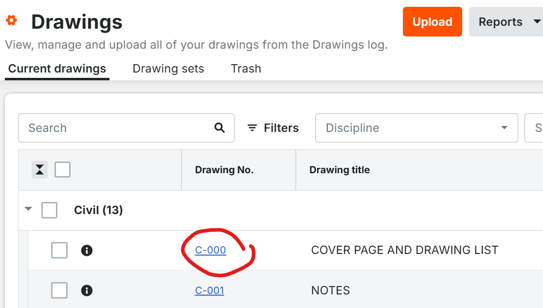 Upload the latest drawing from the change then Select a drawing to view a drawing and add mark up
