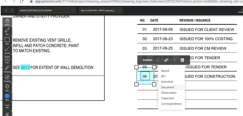 Select the change pdf for this revision that was uploaded to the documents. Select the markup and publish.