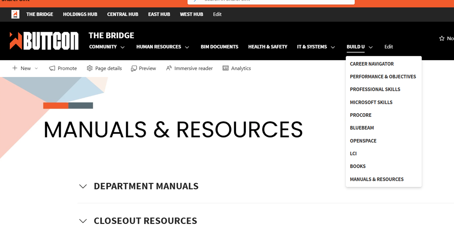 Go to BUILD U tab then select Department Manuals