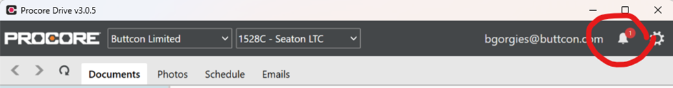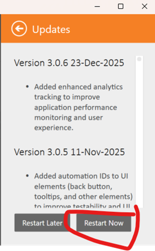 - Scroll to the bottom of the side panel. If a Procore Drive update is available, click the Restart Now button.