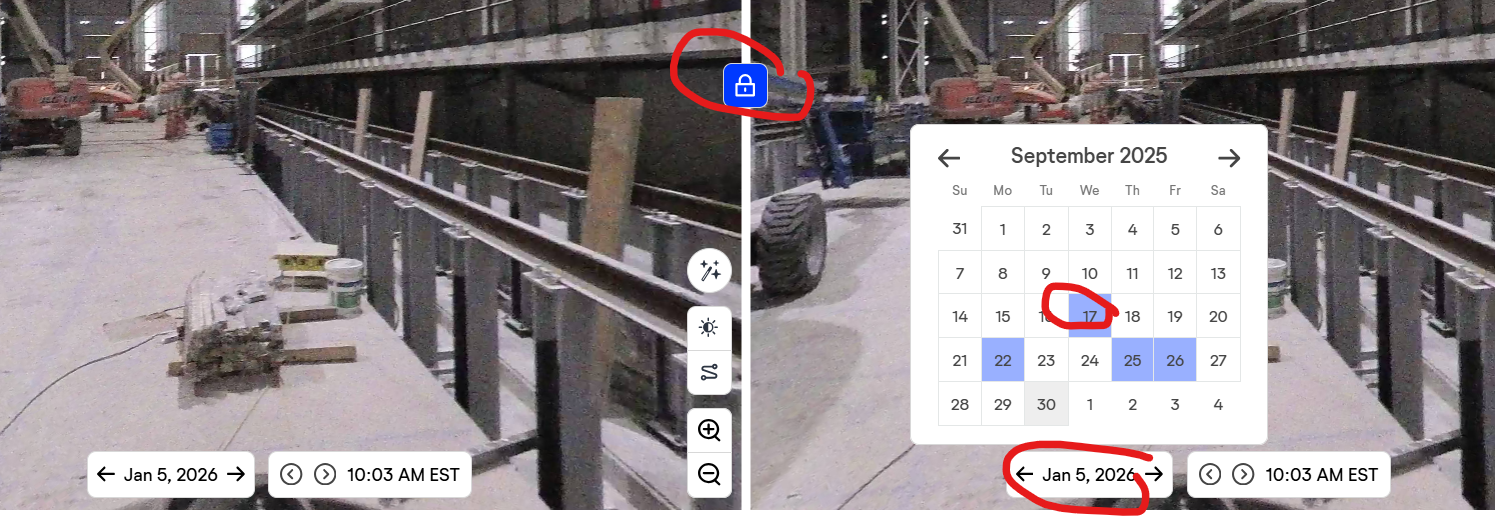 Select the Date in one of the view and select a previous dates to compare between the two captures.
