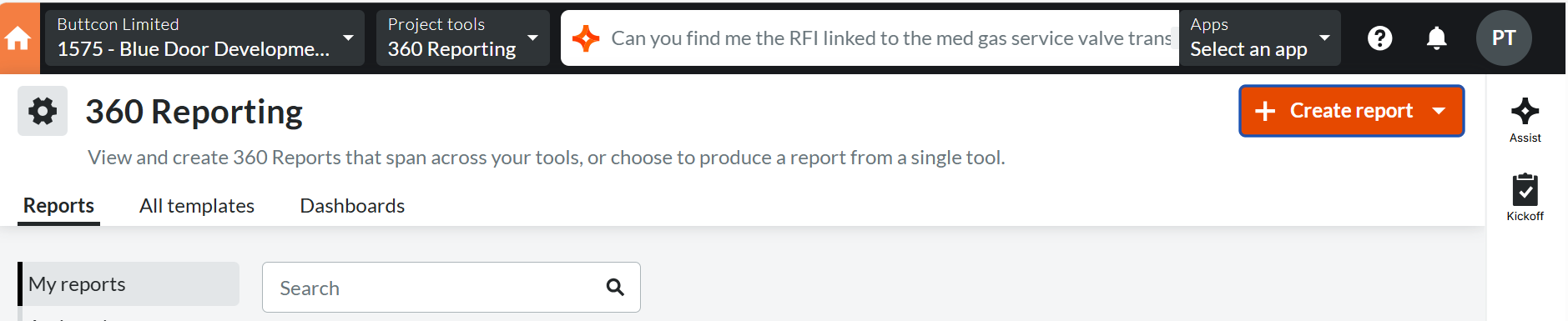 - Navigate to the 360 Reporting tool at the Company or Project level.